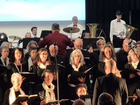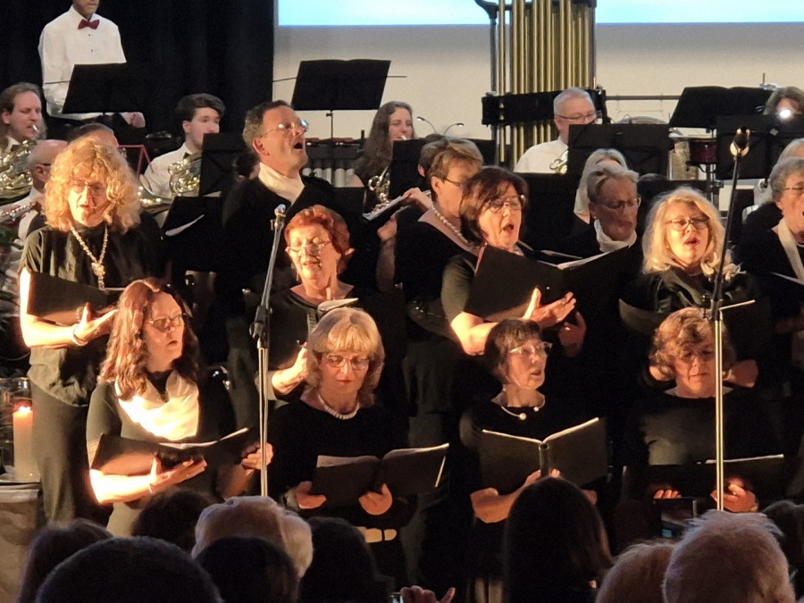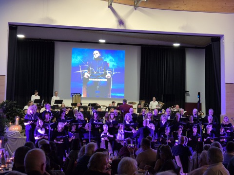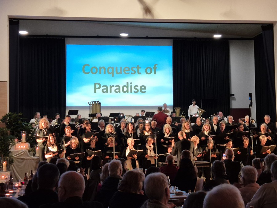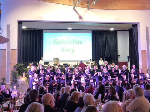 In der vollbesetzten Festhalle in Höfen waren wir aufs Beste eingebunden ins "himmlische" Programm und sangen zusammen mit der Kapelle "Gabrielas Sang" (mit unserer Solistin Ursula), "Engel" von Ramstein, "Conquest of Paradise" und "Land of Hope and Glory".